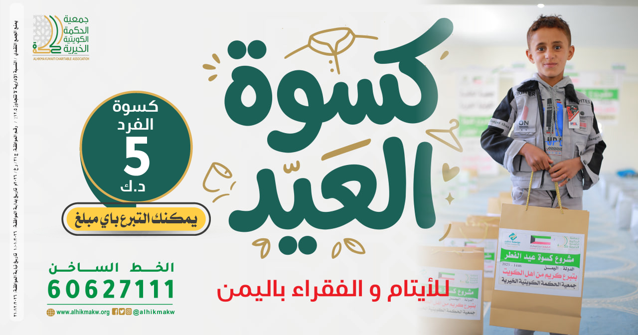 تدعوكم جمعية الحكمة الكويتية الخيرية للمشاركة في هذا العمل النبيل، وكسب اجور ادخال السرورعلى المسلمين.